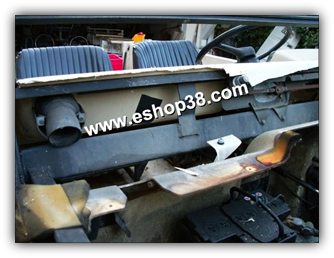 La suite du démontage implique un accès direct au tube carré de fixation du support de pare-brise. La planche de bord étant déjà endommagé, nous optons pour le sacrifice de celle-ci.