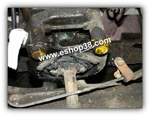 - Si malgré cette astuce l'assemblage résiste encore il faut prévoir de désolidariser la butée de suspension (6) de sa rondelle (voir fléche rouge). Ceci a pour but de désolidariser en cas de forte oxydation le support de PDS (7) de la butée de suspension (6).