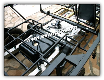 - Le réservoir est fixé sur l'essieu arriére par 2 vis,2 rondelles et 2 entretoises nylon.