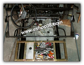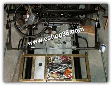 - Aprés avoir fixé la partie arriére de la tubulure avant (2 vis positionnées sur les supports de pot de suspension du châssis) il est nécessaire de centrer le châssis tubulaire sur la plateforme.